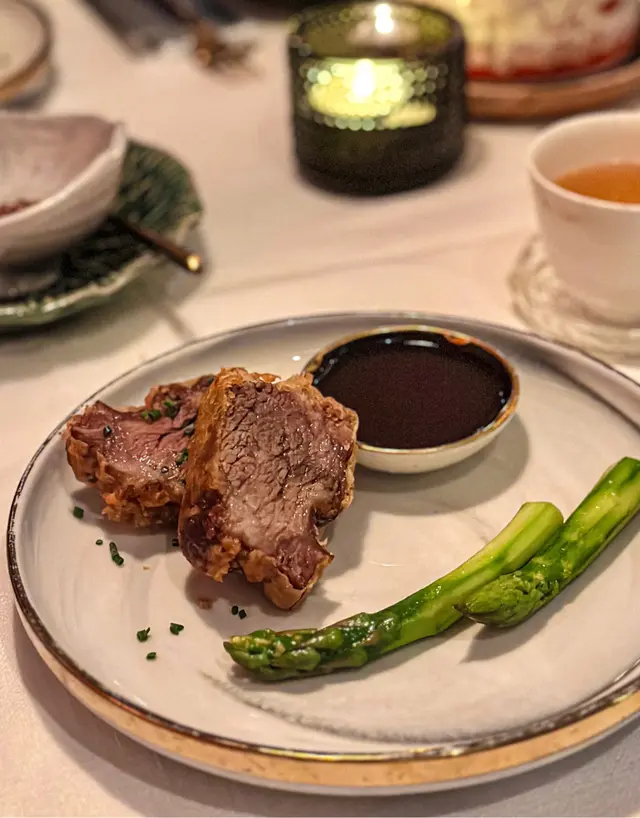 前菜有signature既蜜汁叉燒 不過凍左唔熱🫣幾道主菜都出色 食材高貴 有芝士龍蝦 四頭鮑魚😚另外全晚MPV係脆皮牛坑腩😍第一次食炸牛腩! 外層薄脆香口 牛坑腩好軟腍帶油脂感 醬汁鹹鹹甜甜✨最後甜品既薑汁奶凍好好食! 薑味好重又嫩滑~ 慶祝生日仲有壽包🥳🍑