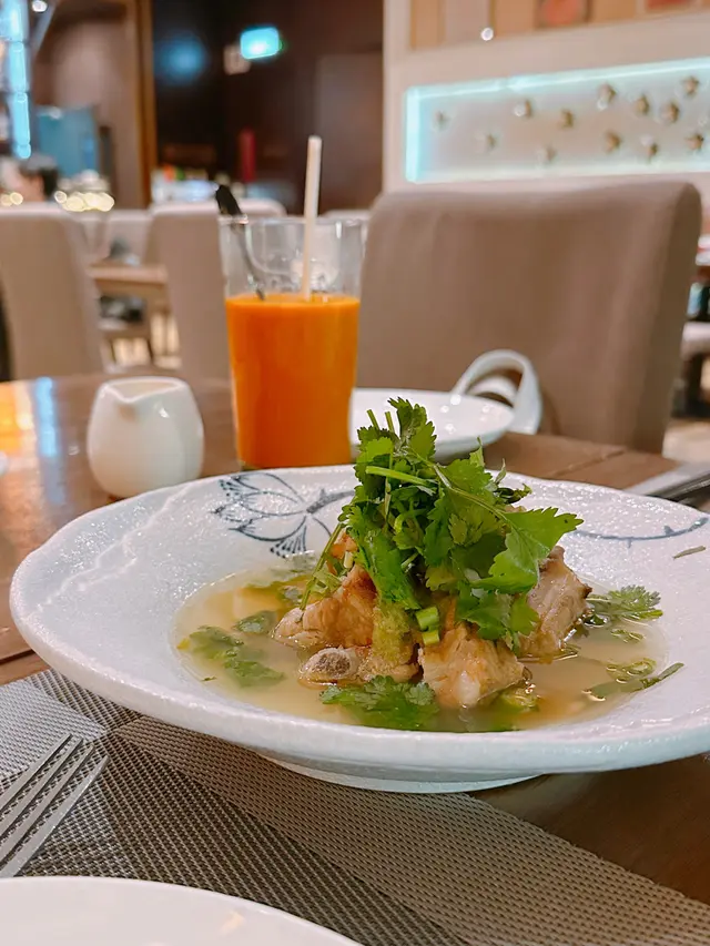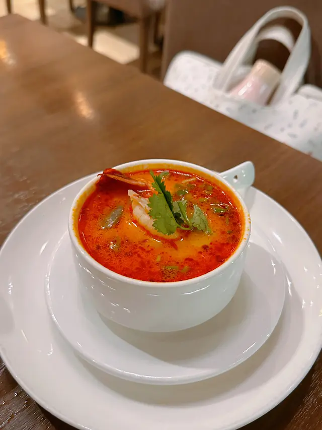 冬蔭功湯🥣酸辣度適中☺️充滿九層塔、香茅等味道😬大蝦彈牙🍤