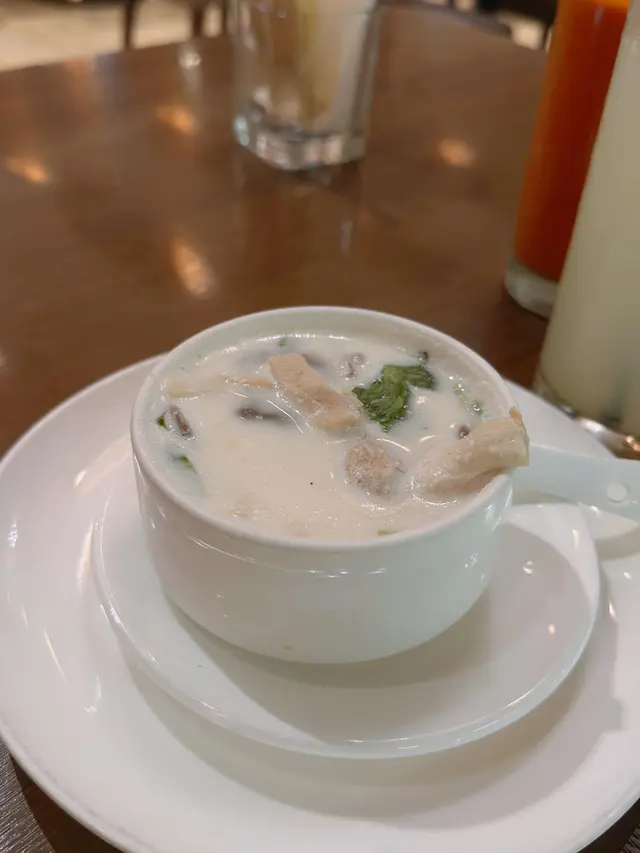 椰汁雞湯🐓一入口首先係濃郁椰汁味🥥然後就有種類似冬蔭功嘅酸味😲雞肉好嫩滑😋仲有雜菌同蝦球🍄