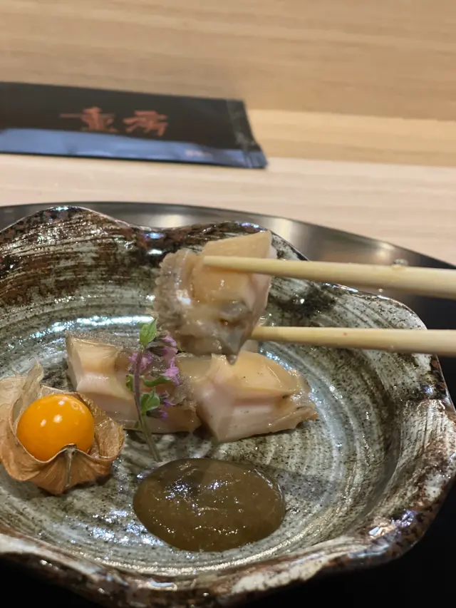 🎏磯煮鮑魚 :配上以鮑魚肝淆製的肝醬,爽口彈牙
