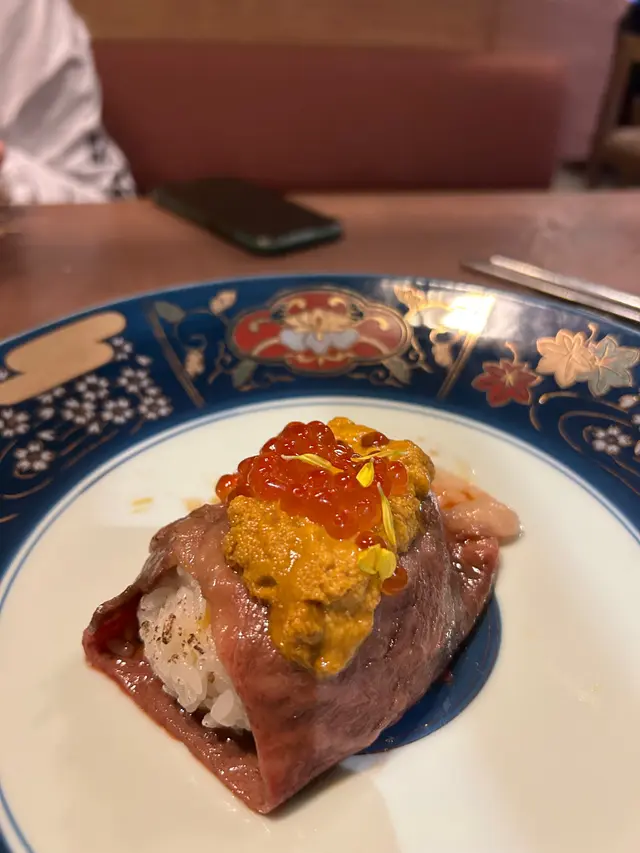 店員為我地席前烹飪,炙燒過既和牛包裹住米飯同蛋黃,配上海膽同三文魚籽。和牛油香同海膽鮮甜完美融合,味蕾大滿足✨