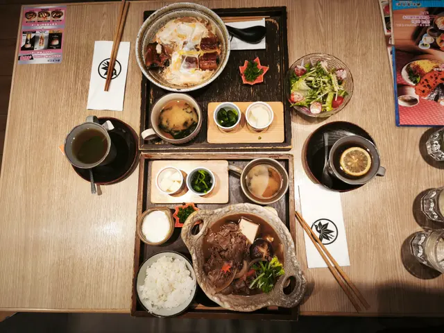 1)豪華和牛肉壽喜燒定食 - 壽喜燒汁甜而不膩,和牛份量好多,和牛滑嫩,配上綿滑嘅米飯及沾上蛋汁,可口美味。定食套餐包咗麵豉湯及漬物。😋