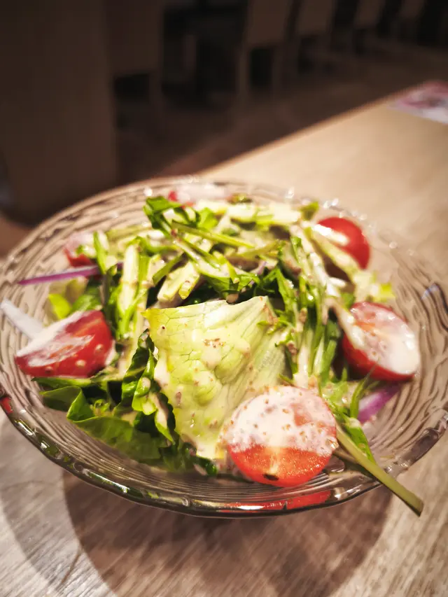 4)蕃茄胡麻沙律 +$20 - 蕃茄配上羅馬沙律菜,清新開胃