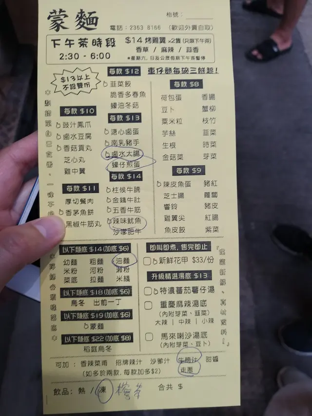 南乳豬手+金錢牛肚+柱候牛腩+蒙麵,南乳豬手入味又夠軟稔有膠質,金錢牛肚爽口不會韌,柱候牛腩同樣炆得入味又夠稔!蒙麵的質感幾特別,比烏冬細及柔軟,微微煙韌卻又不及薯粉那種煙韌,幾有趣。