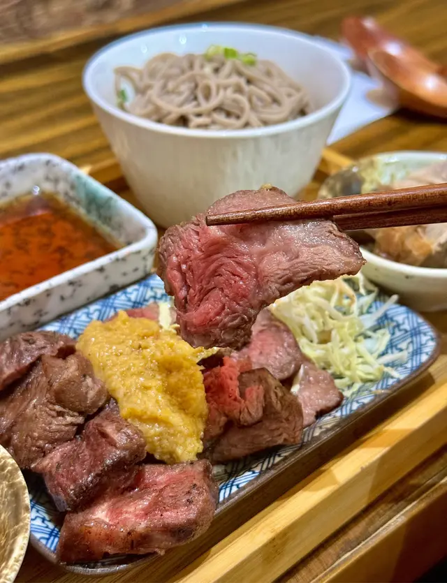 🍱紅磡| 慢煮日式料理 ♡ 日嚐 ymang等級32025-11-14157 瀏覽 關注 🐮慢煮百里香牛板腱配蒜蓉粟米醬 $158呢個牛板腱係期間限定🧡每個餐可以揀兩種小菜,揀咗日本大根同和風茄子,另外仲會配一碗湯同一杯清茶🍵每件慢煮牛板腱都肉質嫩滑,一啲都唔韌,好香濃牛味,配埋蒜蓉粟米醬更好味👍🏻⋆🐷慢煮豬頸肉配荔枝玫瑰醬 $88呢度慢煮豬頸肉非常有驚喜,同平時食嘅豬頸肉唔同,豬頸肉慢煮到好腍,而且荔枝玫瑰醬好香好清新❤️同豬頸肉好夾,跟餐配咗稻庭烏冬,青蘋果紫薯球仲有南瓜佃煮🧡青蘋果紫薯球好特別,味道清新👍🏻以上食評乃用戶個人意見 , 並不代表OpenRice之觀點。讚好分享🍱紅磡| 慢煮日式料理 ♡ 日嚐 日嚐 https://s.openrice.com/QrbT0OZDV00檢舉 張貼 評分5味道5環境5服務5衛生5抵食用餐途徑堂食