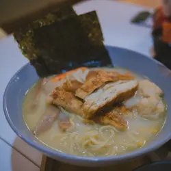 -日式素豆腐扒拉麵,外觀像豬扒,但實際是腐肉製成,味道不過不失,麵以蛋素麵為主! 湯頭很好!