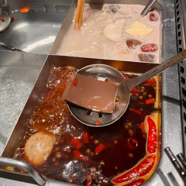 有麻辣火鍋湯底,怎能缺少四川麻辣火鍋必吃的鴨血。有兩款口味選擇:生鴨血或者熟鴨血,揀了熟鴨血(半份)($26),貪其切成一片片,方便燙烚。沾了少許調味粉,又麻又辣又有芝麻香,果然與爽滑煙靭的鴨血很匹配。
