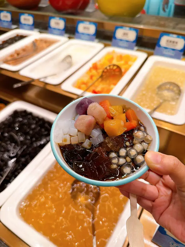呢度嘅甜品真係特別又多款式!三色芋圓、愛玉凍,加埋配料真係好好食!仲有杯裝雪糕、軟雪糕、馬卡龍、大福、木糠布甸……全部任攞任食,記得留定個胃啊!
