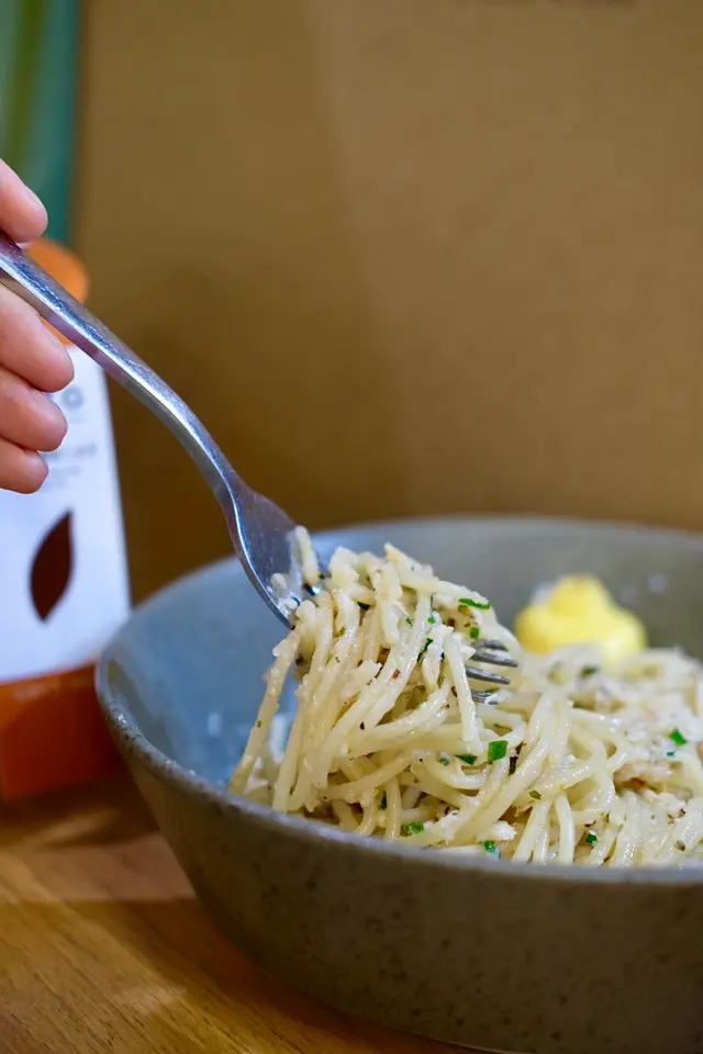 餐廳的意大利粉用上特級初榨橄欖油,呢一款香辣又惹味。