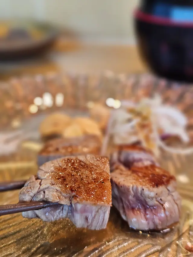 【頂級美國牛肉】厚燒五成熟,師傅火候掌握非常好,外焦香內軟嫩,肉汁豐盈。