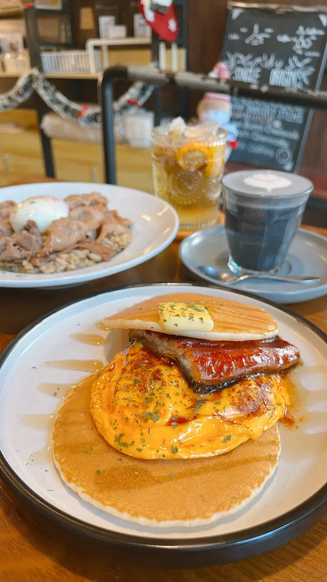 又係少見嘅配搭 擺盤又係好靚 鰻魚都幾大條 我同朋友係share黎食每人都食到唔少 熱香餅嘅楓糖係入到餅入面 啖啖都好香🤤