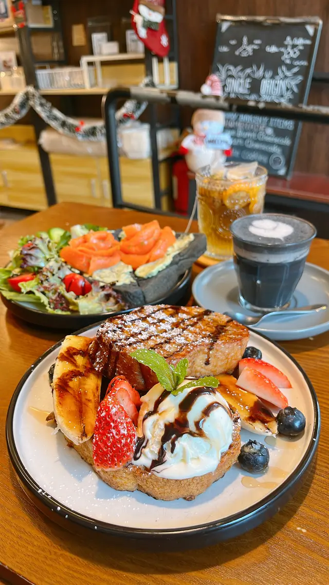 賣相極靚 鍾意打卡必點 而兩朵煙三文魚玫瑰都幾大朵😂多士非常脆 牛油果醬同煙三文魚亦都可以話係黃金組合好夾 伴碟仲有啲黑醋沙律 健康之選😎