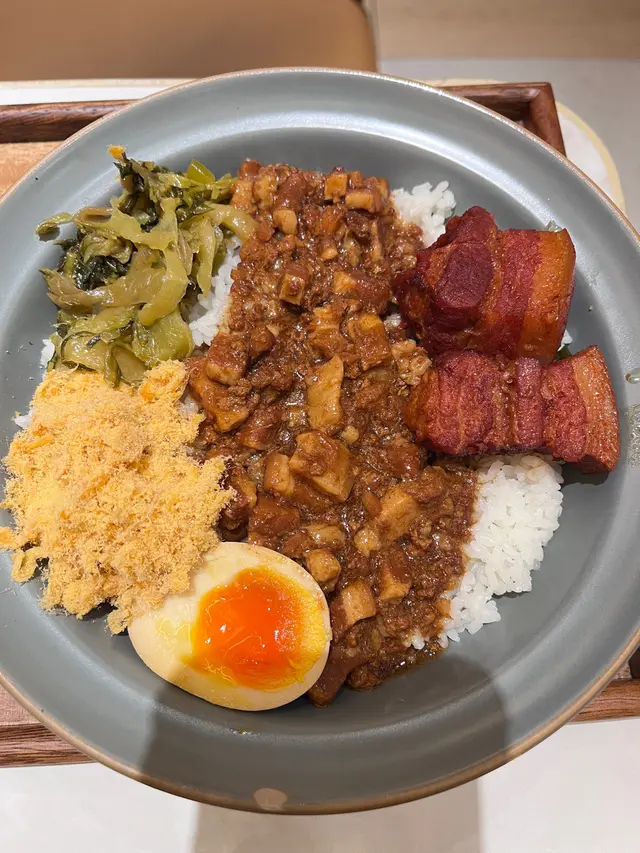 上次食這個飯朋友讚口不絕,今次再嘗仍然滿意度很高,很高興它仍然保持水準!熔肉一樣肥瘦分明,肉質仍然軟腍,配菜有咸酸菜、肉鬆、滷肉和糖心蛋,加上出色滷肉汁和粒粒分明白飯,大滿足👍🏻