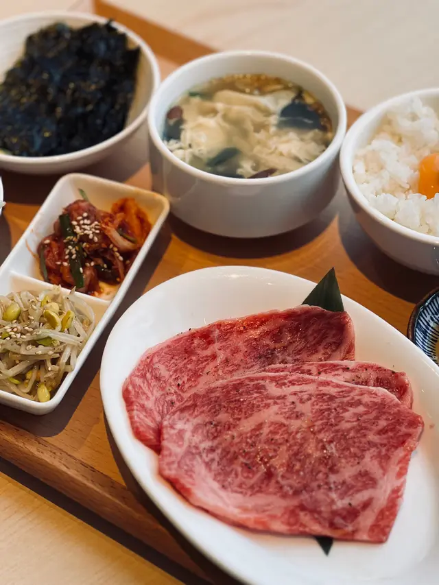 呢個套餐亦都太令人心動啦!裏面有上級牛肋肉同上級牛脊肉,簡直係絕了!上級牛肋肉肉質絲滑,烤熟後外脆內嫩,每一口都充滿咗豐富嘅汁液,咬落去似食絲絲細滑嘅美味,牛肉嘅香味喺口中融化!而上級牛脊肉更係絕了,口感超妙,咀嚼時肉片迅速融化喺口中,帶嚀濃郁嘅牛肉味,絕對能滿足肉食愛好者嘅味蕾!🥩唔止咁,配菜亦都超級豐富,有沙拉、拌菜、泡菜、紫菜海帶蛋花湯,簡直係一頓開心滿足嘅美食盛宴!😋最後仲有一杯Haagen Diaz雪糕作為完美嘅結尾!呢套餐真係令人欲罷不能啊!