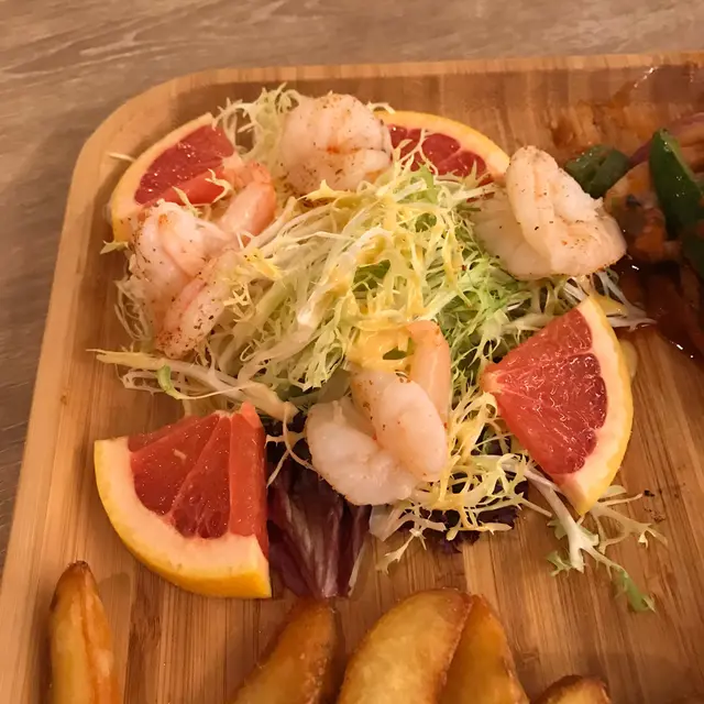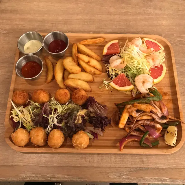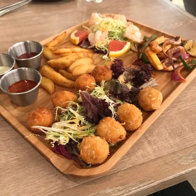 馬介休球有四粒,炸得香脆。蝦沙律菜帶來一點清新,蝦肉彈牙。另外,有好多薯菜,適合多人分享。
