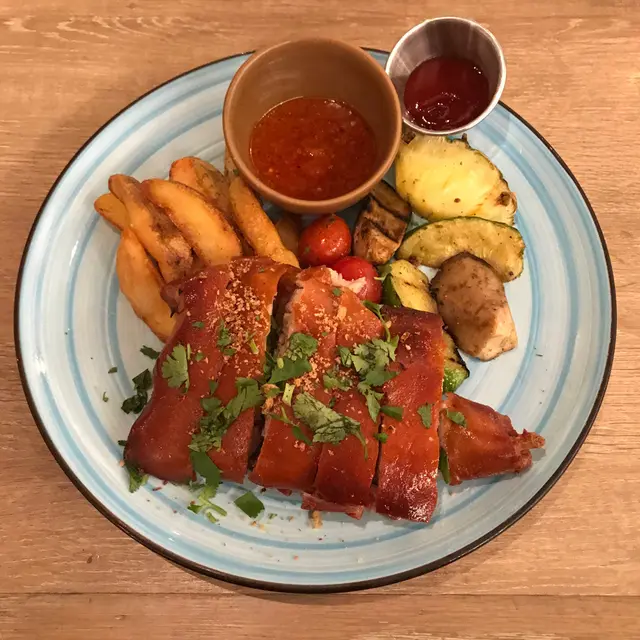 點上特製醬汁微辣,更加惹味。薯菜份量多,點茄汁也是豐富的。