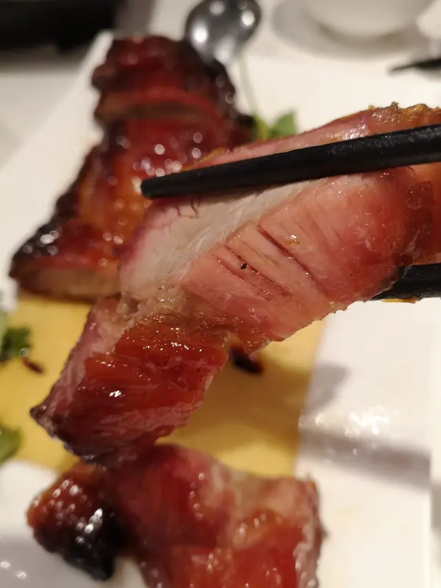 以為已經滿足到頂點, 這份「第一叉」 也實在落足心機 ,用料不惜工本。 自設燒臘工場, 就在隔籬店舖, 感覺好似啱啱燒完 就可以上檯! 叉燒厚切~ 一啖咬落絕對滿足。 目測可能有一吋厚, 肉質甘香夠腍, 肥瘦相宜, 蜜汁立立令, 蜜味好天然唔會有人工嘅甜味, 衆人讚不絕口。