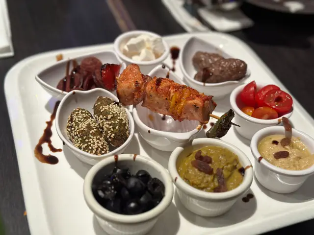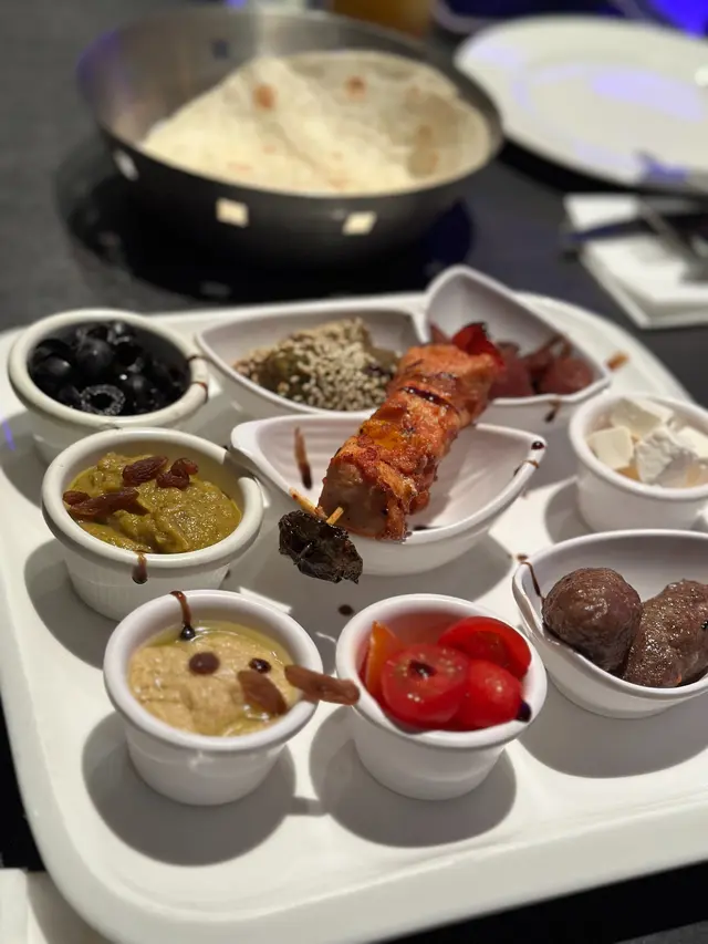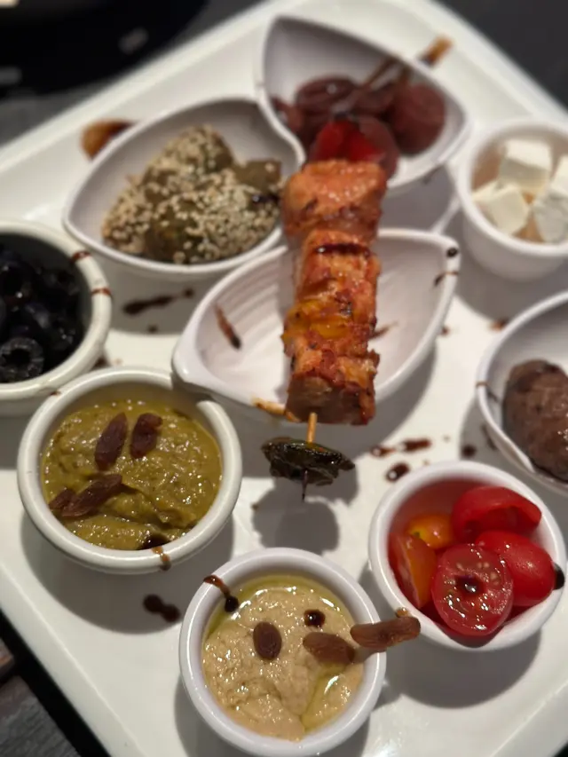 尼個拼盤好豐富,中間有條烤肉(羊肉)、肉丸、鷹嘴豆、蕃茄仔、橄欖、芝士,可以一班朋友分享,除咗有芝麻嗰個有啲奇怪,其他全部都好好食!好正宗!