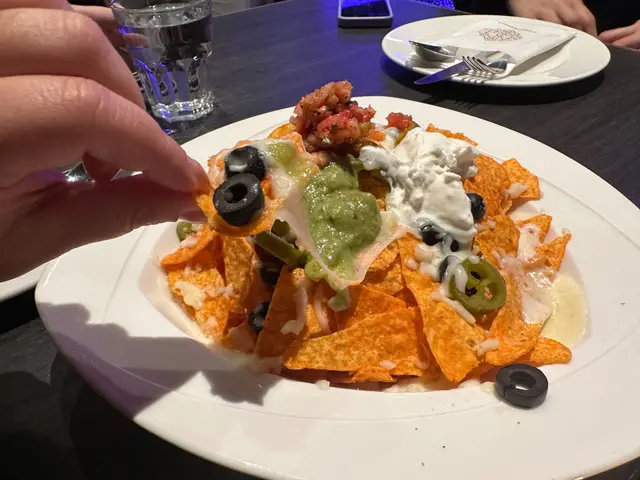 我哋一行四人,有個friend好遲先數到,所以我哋叫咗小食食住先。 面頭有Mozzarella cheese, sour cream, olives, 同牛油果醬,份量都好大,食完好飽。