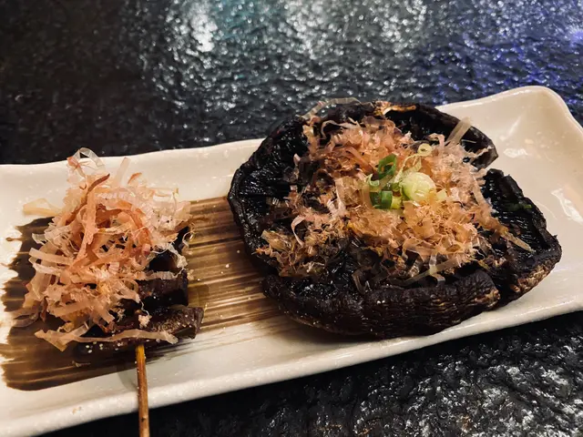 肉醬或洋蔥等配料一起烤,菇味濃郁多汁,口感厚實。