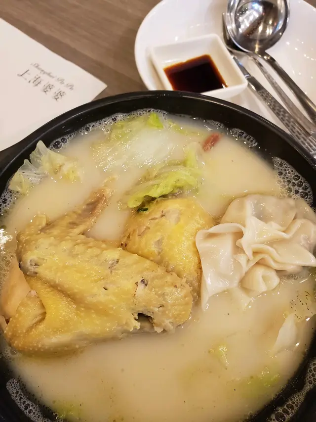 我們點了砂鍋雲吞雞,因晚上不想吃得太油膩,墊墊胃便算,雞肉是嫩滑,雲吞大大粒,連配菜津白也份量好多的。湯底鮮甜美味,果然沒有失望。