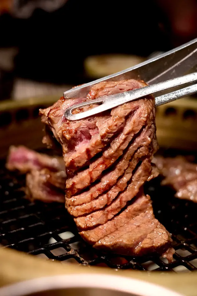 Prime牛扒,以及韓式醬醃牛肋骨,店員全燒唔駛客人落手,熊熊烈火🔥,牛肉外層焦香,肉質保持鮮嫩,牛肉味香濃!而醃牛肋骨亦好入味軟腍