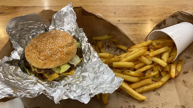 美式漢堡登陸香港 HeinzCheng等級42024-04-131K 瀏覽 關注 當年five guy宣布係香港開設分店,簡直係群情洶湧,第一間灣仔分店人人大排長龍,個個都想一試中價美式漢堡既味道。我都唔例外,當年都有去到一試。今日再來回味一下,揀左芝士漢堡,加配薯條,漢堡size好大,完全美國人口味,漢堡肉味偏淡,醬汁相當多,好易食到成手都係,薯條口感好冧,不過薯味搭夠。以上食評乃用戶個人意見 , 並不代表OpenRice之觀點。讚好分享美式漢堡登陸香港 FIVE GUYS https://s.openrice.com/QrbT0Ju9I00檢舉 張貼 評分3味道3環境3服務4衛生3抵食用餐途徑堂食