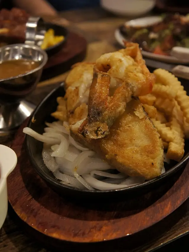 親自將醬汁淋在鐵板上,作為ribeye steak,佢食起o黎肉質鬆軟juicy,配上medium rare,口感更佳。