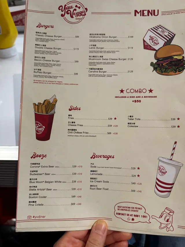 見到每個Burger都係新鮮做。食落口感真係似牛肉,素牛肉也juicy, 包內有番茄,沙律菜,酸瓜,加上茄汁、mustard, 而素煙肉係炸,外表係彷真的煙肉,咬落去係脆卜卜,整體配合得好perfect! 食得出素牛肉非買現成貨,應該係店內自己搓同調味。