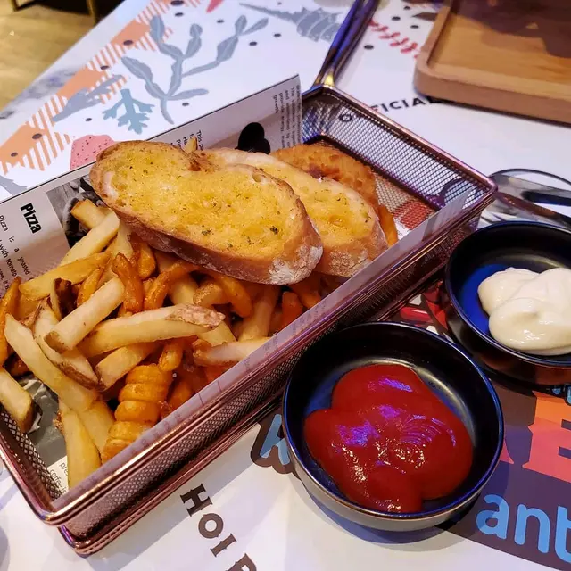 另外田園沙律,蒜蓉包薯條薯圈洋蔥圈同意粉係可以無限添食架! 薯條薯圈炸到好好味,茄醬意粉都好好味,係偏甜味個種