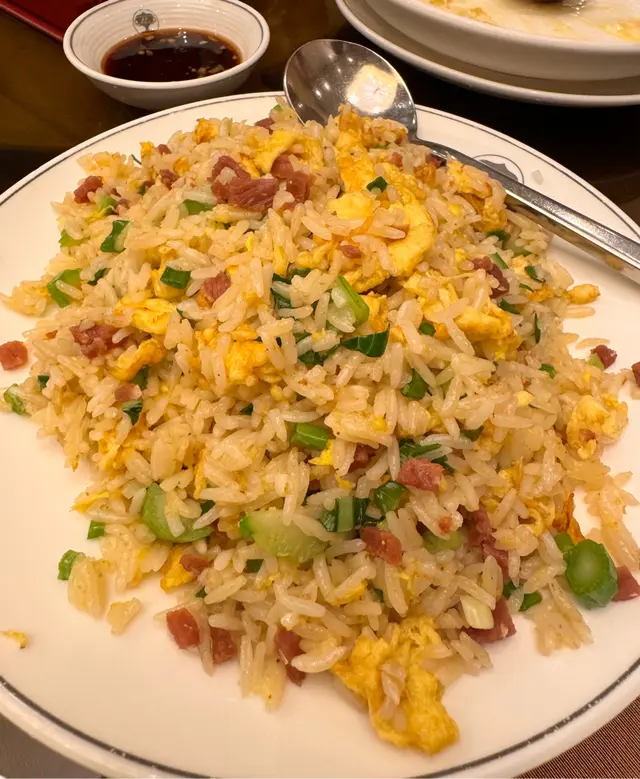 配料有金華火腿粒、菜粒及雞蛋,炒飯呈金黃色,賣相吸引,飯粒軟熟可口。