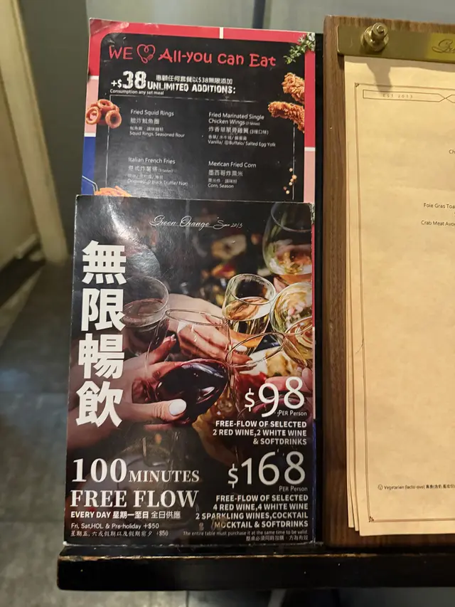 環境布置充滿節日氣氛,仲會播聖誕歌🎶 重點加$98就享指定紅白酒和無酒精飲品無限暢飲,飲足100分鐘,酒鬼首選!🍾
