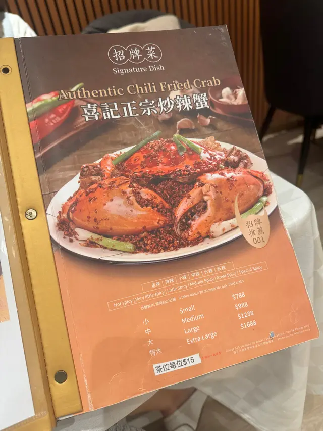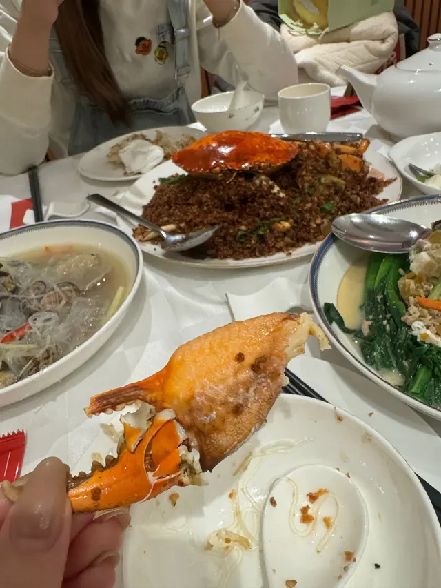 🔥 招牌炒辣蟹(壓軸重磅):蟹肉厚實鮮甜,以薑蔥蒜與指天椒爆炒至香氣四溢,辣味溫和襯托蟹鮮,底層蟹沙吸盡精華,令人一試難忘!除經典做法外,也有避風塘、花雕蒸等多款可選,貼心剁件方便食用。