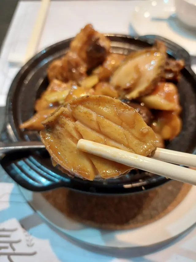 鮑魚身上有𠝹花,格外軟腍,食完一隻又一隻,底部也有鮑魚,有六隻以上:)
