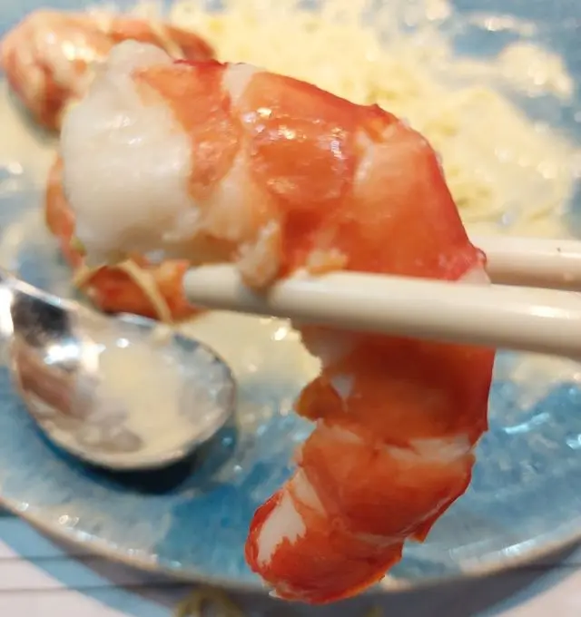 廚師在大大隻虎蝦底部劏開,去腸處理得乾淨又入味:)