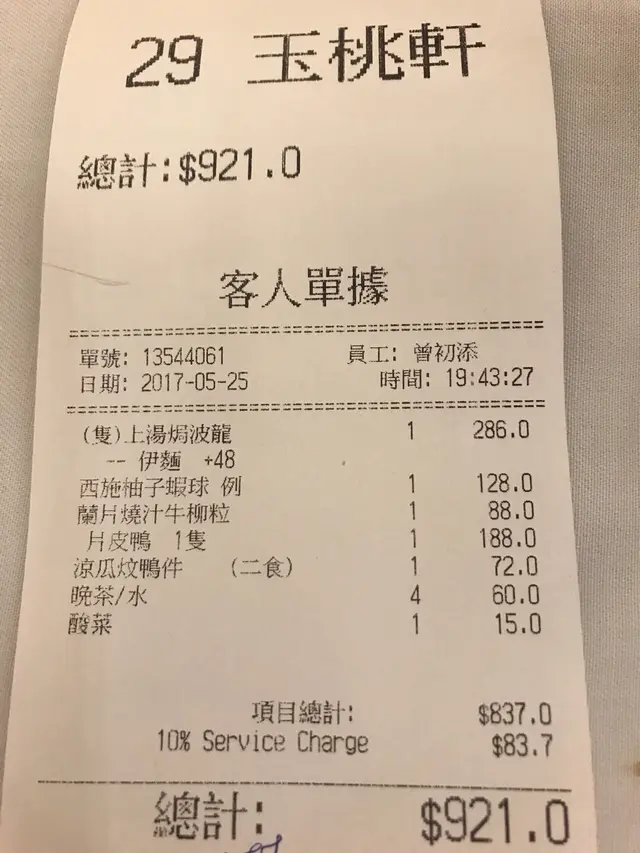 脆皮京式片皮鴨 懶羊Jim等級32017-06-04179 views Follow 同屋企人到觀塘鱷魚恤中心吃晚飯,有好多酒樓選擇,選了中等價錢既玉桃軒酒家。見佢有套餐同不同特別菜式揀。首選芝士焗波士頓龍蝦伊麵同京式片皮鴨。 龍蝦當然係芝士焗最好,芝士味香濃,焗得表皮脆口! 芝士焗龍蝦呢,肉質係爽的!都仍然有鮮味!內里肉質好嫩滑👍芝士焗龍蝦$334北京片皮鴨,配料搭埋薄皮,卷住一齊食好好味,好香鴨味、皮又脆皮脆肉嫩、包著薄餅、青瓜、青蒜、海鮮醬,送入口,鴨肉汁即爆出片皮鴨$188二食叫了涼瓜炒鴨肉,鴨肉好大件,涼瓜甘甜唔算苦。涼瓜炆鴨件$72蘭度炒牛肉粒, 牛肉粒淋身唔韌,介蘭爽脆唔會太過火喉。蘭度燒汁牛肉粒$88柚子炒明蝦球, 柚子味清甜,剛剛好包住隻蝦, 蝦爽脆,醒胃呀。西施柚子蝦$128The above review is the personal opinion of a user which does not represent OpenRice's point of view.2Share脆皮京式片皮鴨 玉桃軒酒家 (鱷魚恤中心) https://s.openrice.com/QrbT0hhOg00Report Post Ratings4Taste4Decor4Service4Hygiene4ValueRecommended Dishes芝士焗龍蝦$334片皮鴨$188蘭度燒汁牛肉粒$88西施柚子蝦$128Date of Visit2017-05-18Dining Method堂食Spending Per Head$240 (晚餐)