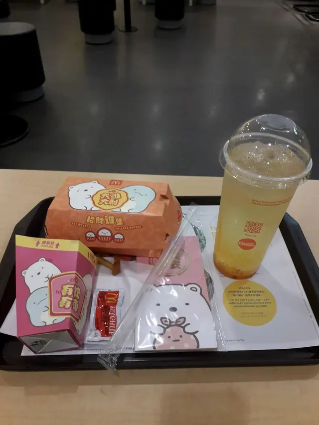 不過我後來發現,喝完「將軍澳廣場」分店「麥當勞」一口味道比較酸的「熱情果梳打」飲品之後,習慣酸味之後再咬一口辣味的「黃金脆薯雞堡」,反而容易適應到「黃金脆薯雞堡」裡面的辣味。