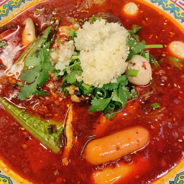 自選六款料超自由👏~小辣湯底香唔嗆喉,土豆粉滑溜索汁,鵪鶉蛋流心+芝士腸爆油香🧀,最驚喜係芋絲索盡辣湯仲keep到爽脆!午餐肉就正常發揮啦~