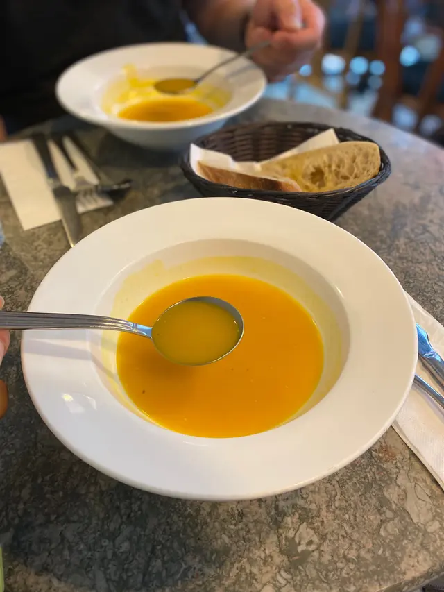 南瓜湯新鮮香甜 入面食到一絲絲南瓜🎃麵包有自家製法包同百吉包🥖咖啡香濃不帶酸 係我鍾意嘅味✌🏿