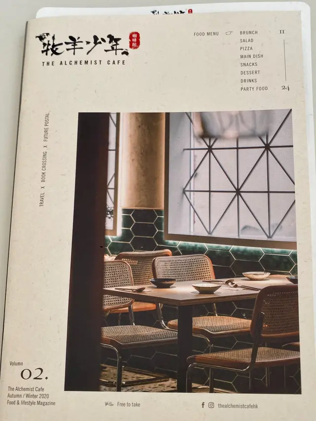 牧羊少年咖啡館這個品牌有了接近十年的歷史,標榜是香港第一間以旅遊為主題的咖啡店,第一間店鋪開在深水埗白楊街,不過我最有印象的是他在葵青劇院的分店,有室外座位的。咖啡店的英文名字Alchemist跟牧羊少年沒有甚麽關係,這是其中一樣有趣的地方,另一個有趣的地方是咖啡店的餐牌是一本雜誌。這天早上光顧,我點了一份英式早午餐和一杯薑燒黑糖拿鐵。