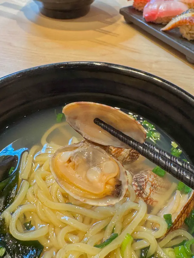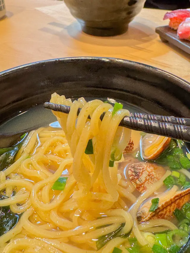 拉麵的鯛魚湯底幾清甜,還有數隻蜆肉。