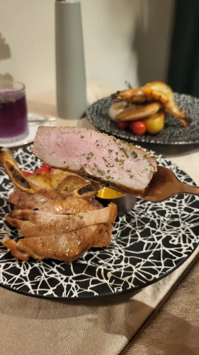 🐷加拿大豬鞍配蜜糖芥末籽汁 ~ 豬鞍切件上碟夠方便, 肉質juicy見肉汁,9成熟剛剛好, 蜜糖芥末籽酸甜平衡,食極唔膩