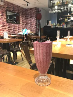 雜莓沙冰有覆盆子、藍莓和牛奶,平時喝的沙冰都很有水狀的感覺,即是不夠「真材實料」,看這杯樣子也知道材料完全是滿滿的,表面有數顆藍莓,底層的是雜莓,喝的每一口也令我感覺像吃覆盆子