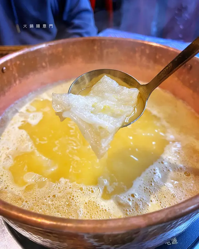 湯底呈金黃色 店員即場剪勁大塊花膠 好奢華