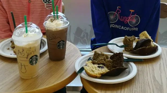 襯住放幾日假, 同亞女去嘆下咖啡。位於商場內嘅 Starbucks 座位靠近兩邊欄杆, ㄧ邊係梳化位, 坐係度可以令人好休閒好嘆咁享受咖啡, 另一邊係圓形枱。每次我都會 order 最大杯凍 Hazelnut Latte, 加 cream, 而亞女就要大杯凍朱古力, 亦係加 cream. 另外有個位擺左玉桂粉, 朱古力粉, 可以自行加, 免費的。再加多藍莓及朱古力 muffin 各ㄧ個。我杯 latte 好香榛子味, 加埋 d cream, yummy, muffin 大大個, 夠鬆軟, 好味道。