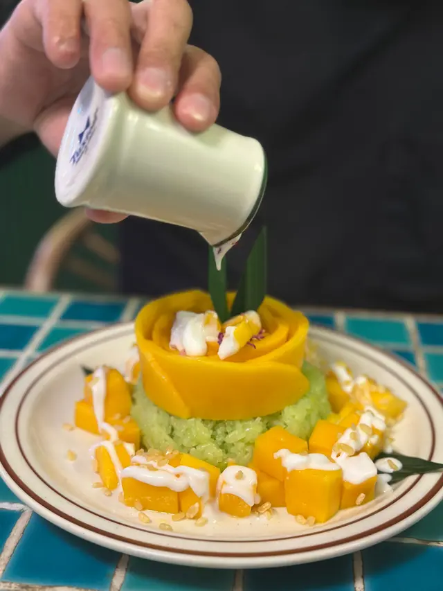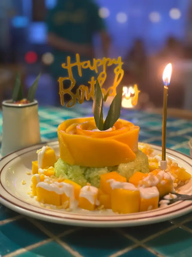 🥭芒果糯米飯蛋糕,芒果熟得啱啱好,糯米煙韌,椰漿香但唔膩,生日版仲有小裝飾,幾有心思。