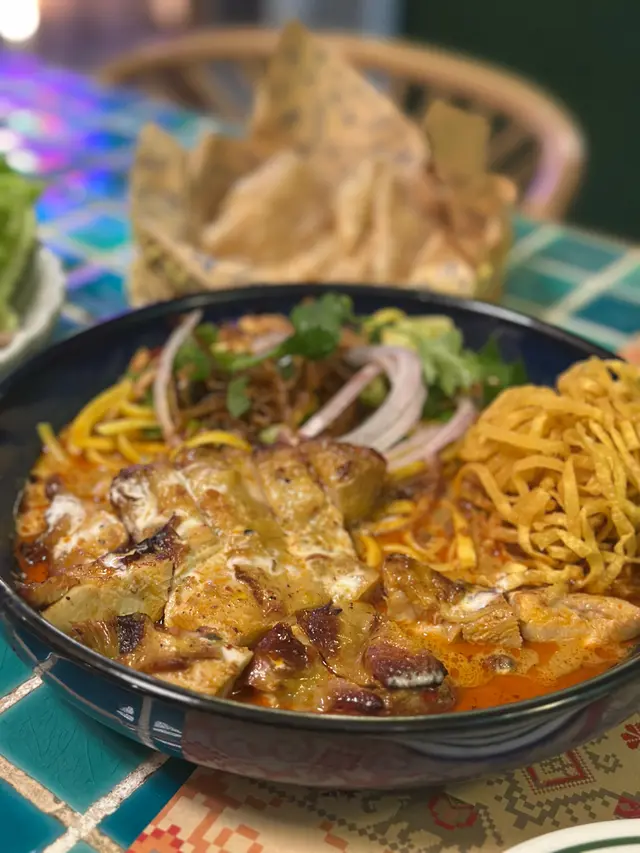 🍜 泰北咖喱金麵配燒雞係今次亮點,咖喱濃香但唔膩,佢地話係全椰奶不加水去整,金麵炸得脆,燒雞皮香肉嫩,配埋湯麵一齊食有層次。