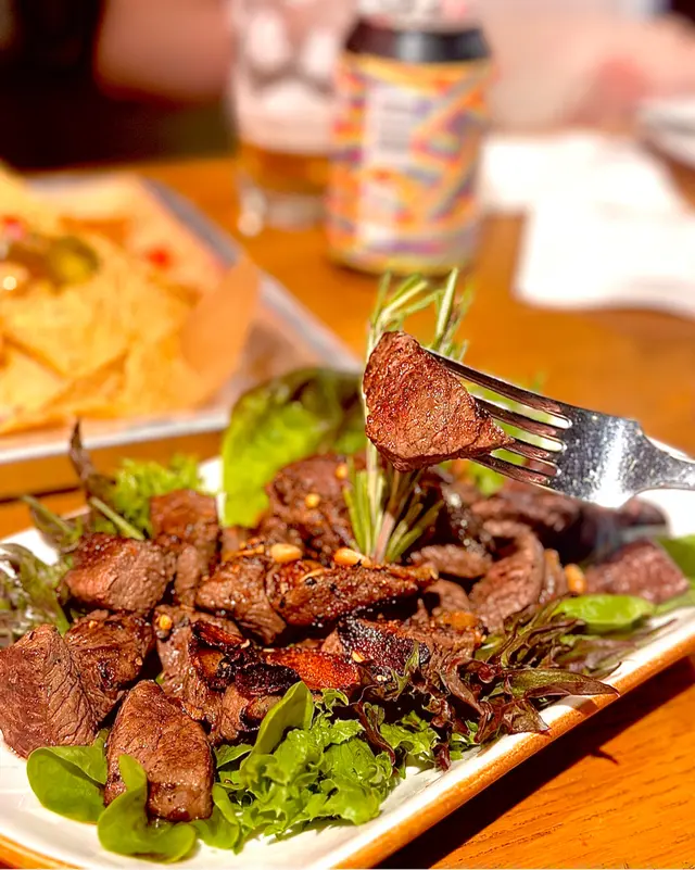 🥩香蒜牛柳粒搭配了辣椒和松子