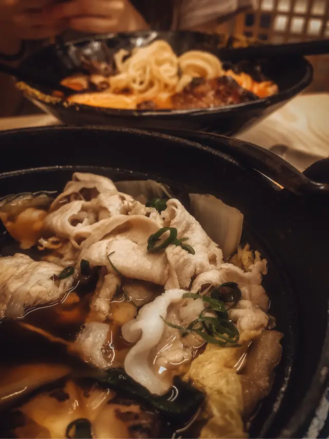 鍋物同拉麵一樣有好多湯底揀,我揀咗鏗魚湯 ,甜甜地好似日式邊爐嘅味。個鍋除咗黑豚肉之外仲有芋絲、金菇、娃娃菜、冬菇、洋蔥、蘿蔔、豆腐同日本板魚蛋(滿滿嘅蔬菜LOL),吸曬甜甜嘅鏗魚湯汁,係健康之選!