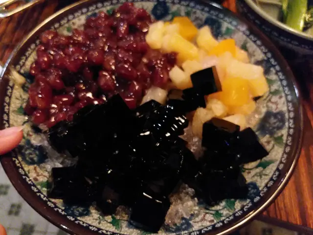幸好紅豆,罐頭雜果和涼粉都是甜的,小米食得津津有味。